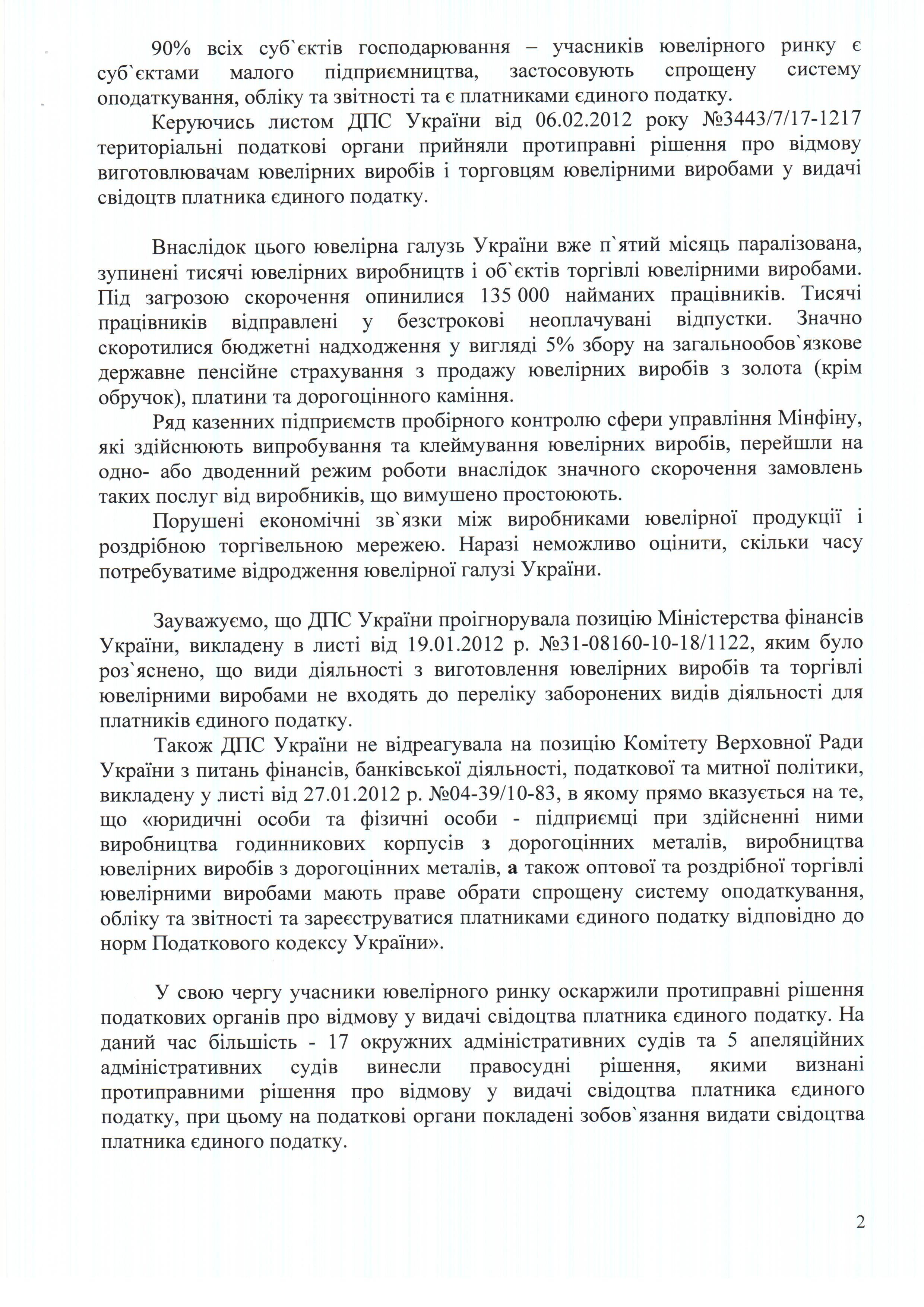 Фотокопію звернення Союзу ювелірів України Ви можете скачати тут: