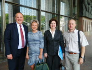 Делегати З`їзду – представники малого та середнього ювелірного бізнесу біля «Українського дому» (зліва направо: Дмитро Видолоб, Тетяна Рейтель, Лучія Рудянська, Андрій Кузьмін).
