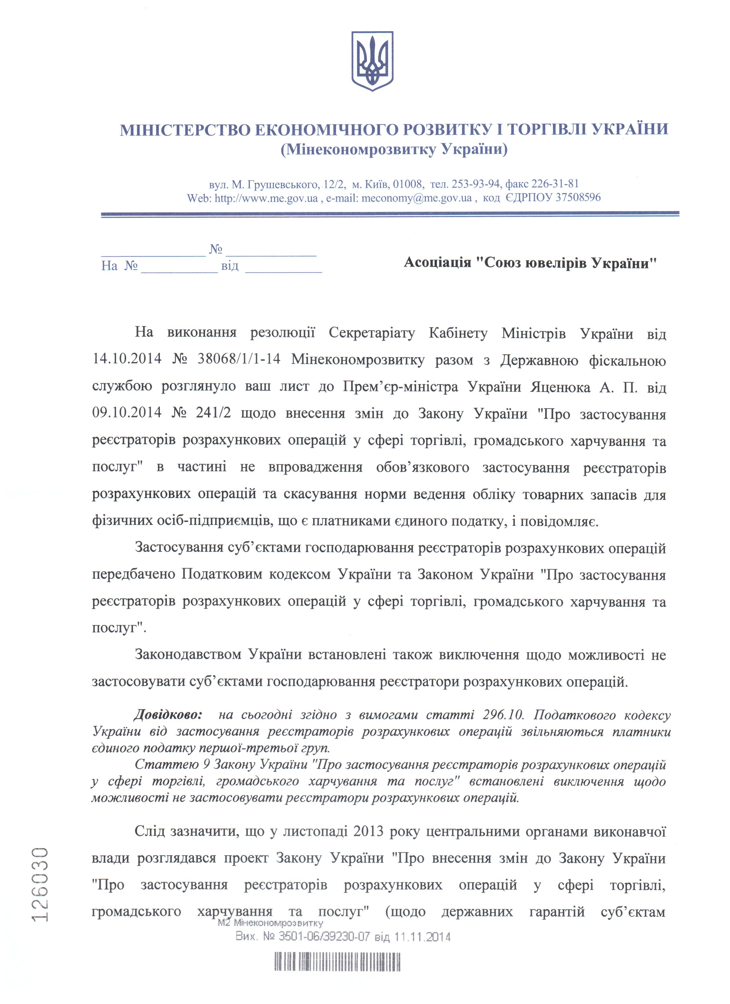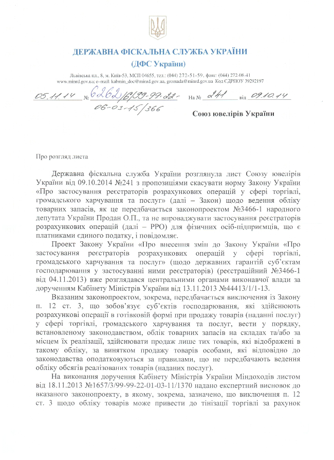 Союз ювелиров Украины продолжает вести работу по предотвращению введения для физических лиц-предпринимателей, работающих на едином налоге, обязательного применения регистраторов расчетных операций и ведения учета товарных запасов.