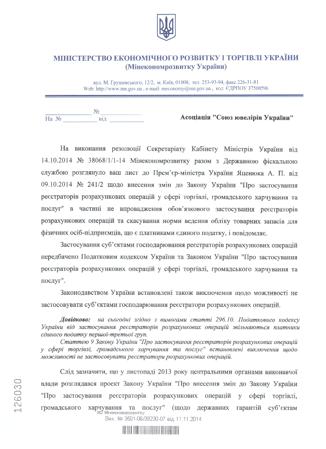 Однако именно о введении для физических лиц-предпринимателей, плательщиков единого налога (кроме торговцев на рынках) обязательного применения РРО и учета товарных запасов говорят в центральных органах власти. В частности, об этом говорится в письмах Минэкономразвития и Государственной фискальной службы в адрес Союза ювелиров Украины, с которыми предлагаем Вам ознакомиться.