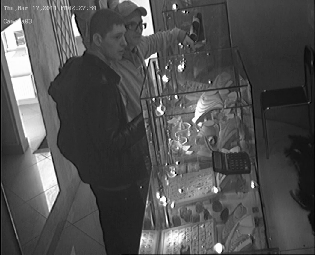 Грабіжників двоє (див. фото). Мають вигляд звичайних молодих чоловіків, але можливо один з них володіє технікою гіпнозу і тому крадіжку помітили не відразу, а через деякий час.